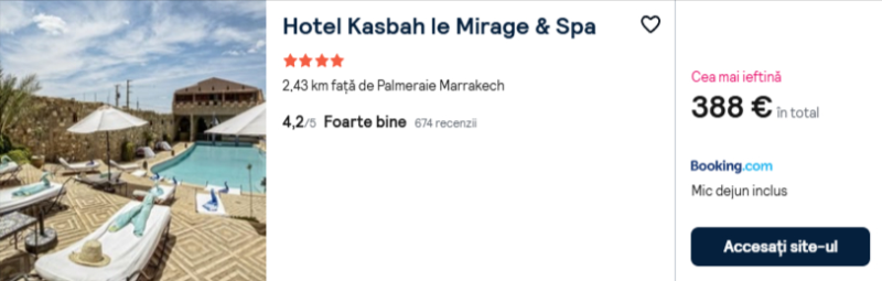 308 €/pers. (zbor si cazare Hotel Kasbah le Mirage & Spa )