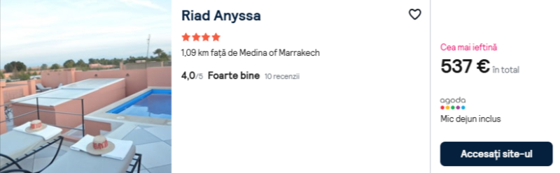383 €/pers. (zbor si cazare Riad Anyssa )