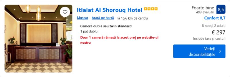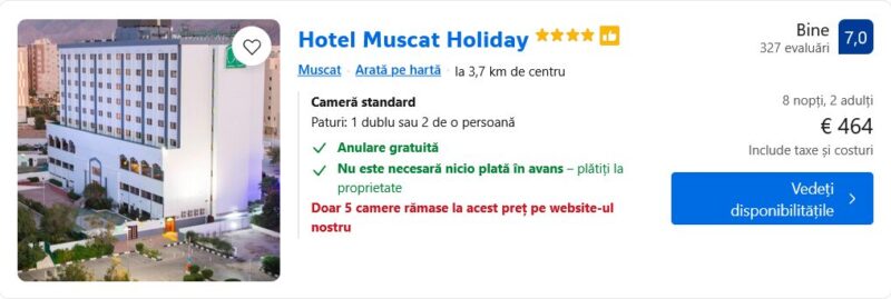 In exemplul de mai jos am descoperit o oferta clara si directa: zbor dus-intors plus cazare la pretul de 537 euro de persoana. O alegere inspirata pentru cei care cauta libertate si flexibilitate in vacante.