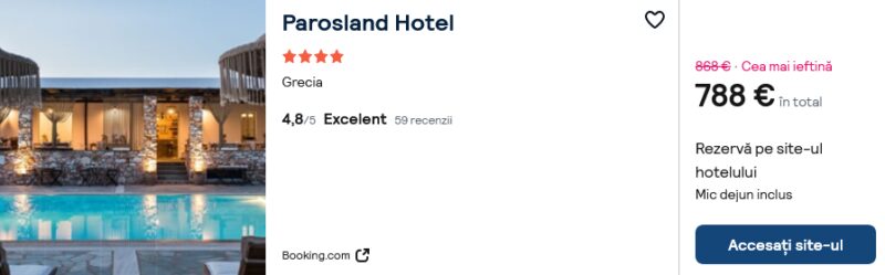 636 €/pers. (zbor si cazare Parosland Hotel )
