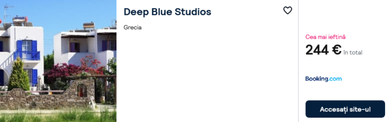 374 €/pers. (zbor si cazare Deep Blue Studios )