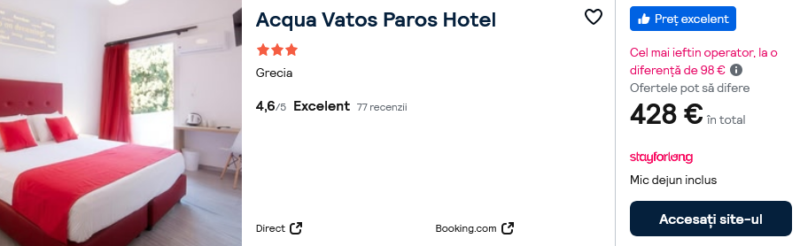 466 €/pers. (zbor si cazare Acqua Vatos Paros Hotel )