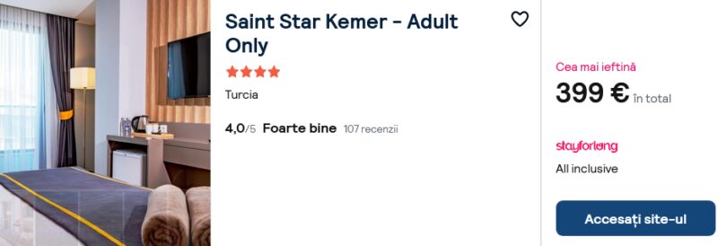 264 €/pers. (zbor si cazare Saint Star Kemer – Adult Only )