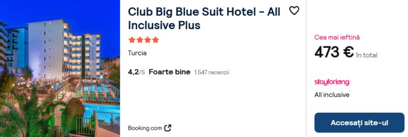 301 €/pers. (zbor si cazare Club Big Blue Suit Hotel )