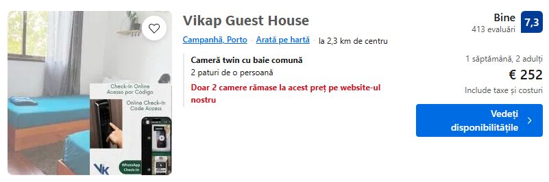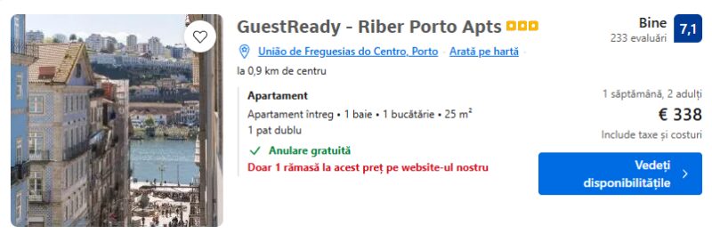 244 €/pers. (zbor si cazare GuestReady – Riber Porto Apts )