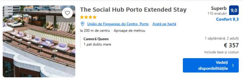 254 €/pers. (zbor si cazare The Social Hub Porto Extended Stay )