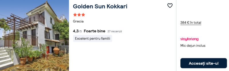 362 €/pers. (zbor si cazare Golden Sun Kokkari )