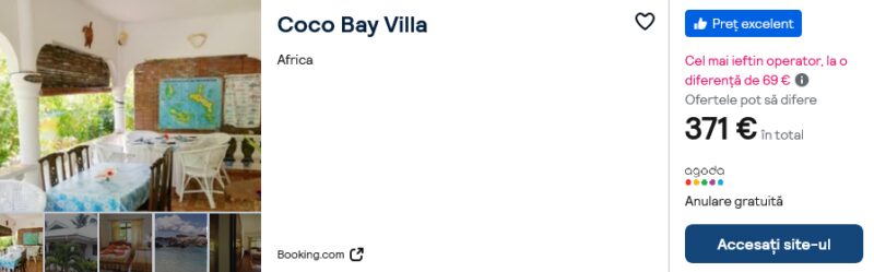 1012 €/pers. (zbor si cazare Coco Bay Villa )