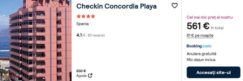 402 €/pers. (zbor si cazare Checkin Concordia Playa )