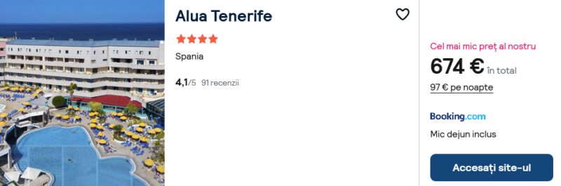 458 €/pers. (zbor si cazare Alua Tenerife )