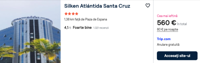 458 €/pers. (zbor si cazare Silken Atlántida Santa Cruz )