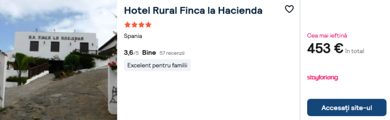 418 €/pers. (zbor si cazare Hotel Rural Finca la Hacienda )