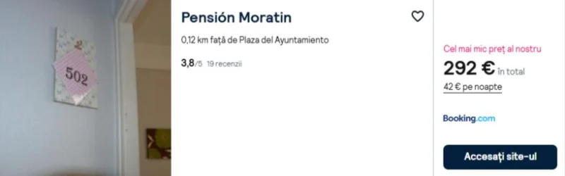 217 €/pers. (zbor si cazare Pensión Moratin )