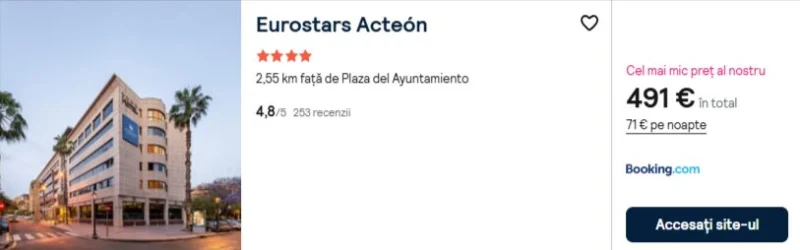 317 €/pers. (zbor si cazare Eurostars Acteón )