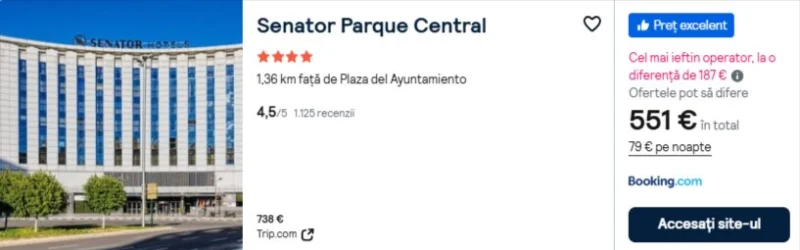 347 €/pers. (zbor si cazare Senator Parque Central )