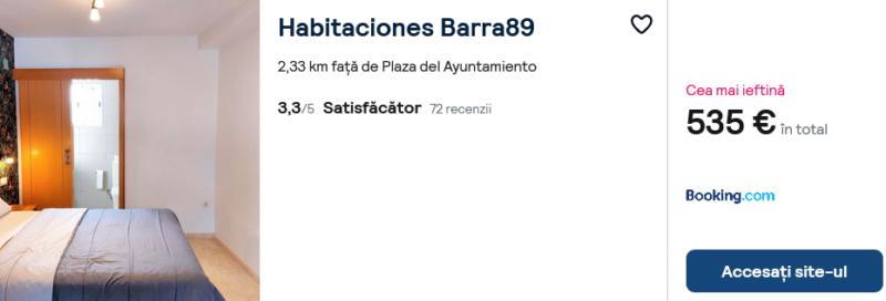369 €/pers. (zbor si cazare Habitaciones Barra89 )