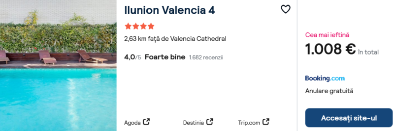 605 €/pers. (zbor si cazare Ilunion Valencia 4 )