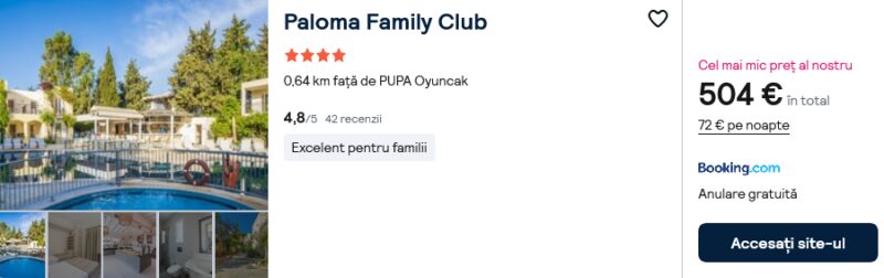 376 €/pers. (zbor si cazare Paloma Family Club )