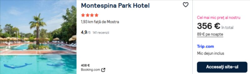 228 €/pers. (zbor si cazare Montespina Park Hotel )