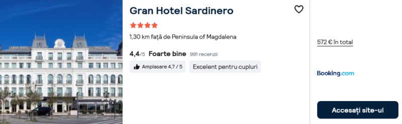 345 €/pers. (zbor si cazare Gran Hotel Sardinero )