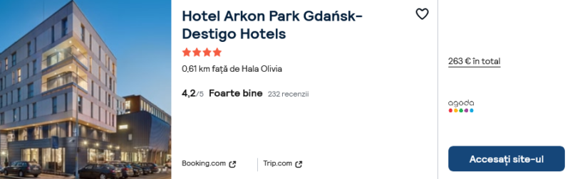182 €/pers. (zbor si cazare Hotel Arkon Park Gdanks )