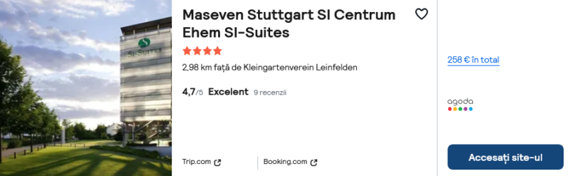 202 €/pers. (zbor si cazare Maseven Stuttgart Si Centrum Ehem Si-Suites )