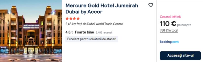 55 €/pers. ( cazare Mercure Gold Hotel Jumeirah Dubai by Accor )