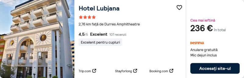 168 €/pers. (zbor si cazare Hotel Lubjana )