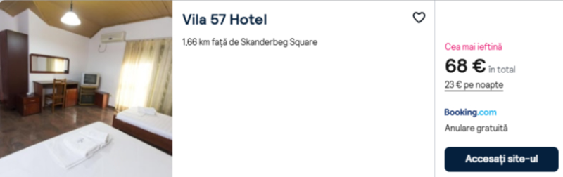 68 €/pers. (zbor si cazare Vila 57 Hotel )