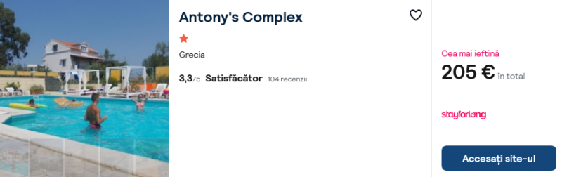 143 €/pers. (zbor si cazare Antony’s Complex )