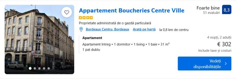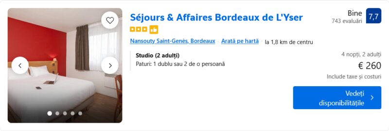 182 €/pers. (zbor si cazare Sejours & affaires Bordeaux de L’yser )