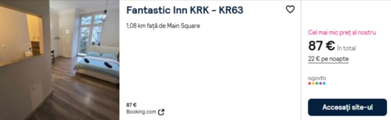74 €/pers. (zbor si cazare Fantastic Inn KRK – KR63 )