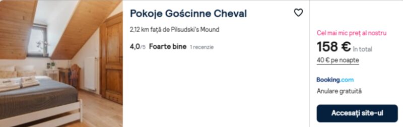 109 €/pers. (zbor si cazare Pokoje Gościnne Cheval )