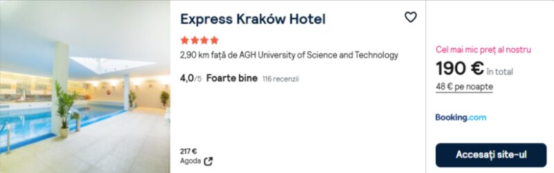 125 €/pers. (zbor si cazare Express Kraków Hotel )