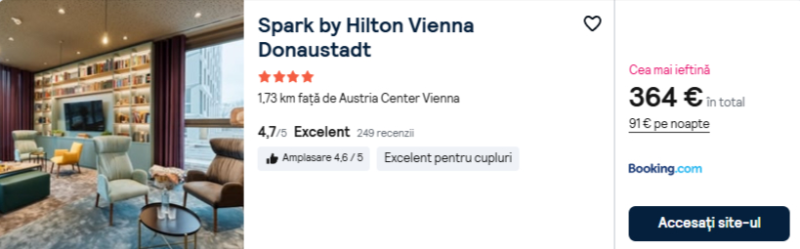 245 €/pers. (zbor si cazare Spark by Hilton Vienna Donaustadt )