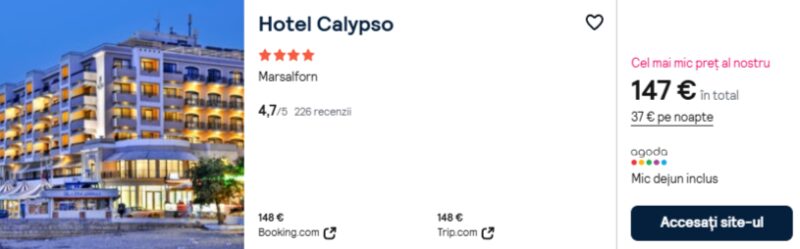 123 €/pers. (zbor si cazare Hotel Calypso )