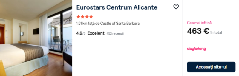 292 €/pers. (zbor si cazare Eurostars Centrum Alicante )