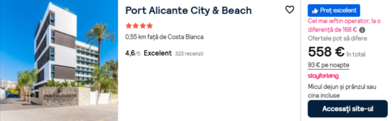 Uite o idee care mi-a atras atentia: pentru aproximativ 186 euro, poti sa ai deja incluse zbor dus-intors si cazare. E genul de oferta DIY unde rezervi separat, dar ai control total asupra vacantei tale.