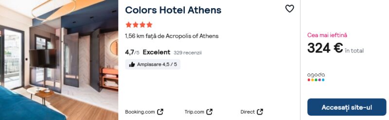200 €/pers. (zbor si cazare Colors Hotel Athens )