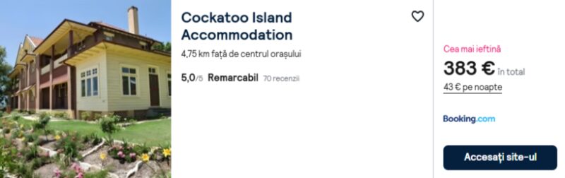 1140 €/pers. (zbor si cazare Cockatoo Island Accommodation )