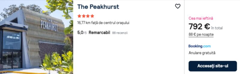 1344 €/pers. (zbor si cazare The Peakhurst )