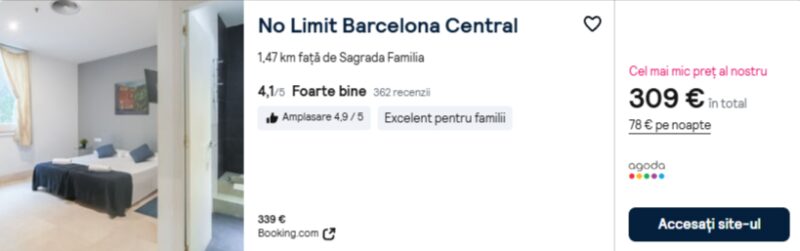 228 €/pers. (zbor si cazare No Limit Barcelona Central )