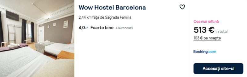 327 €/pers. (zbor si cazare Wow Hostel Barcelona )