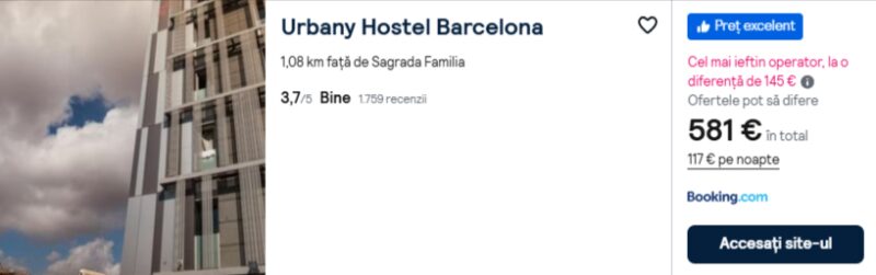 361 €/pers. (zbor si cazare Urbany Hostel Barcelona )