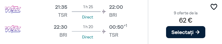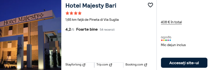 266 €/pers. (zbor si cazare Hotel Majesty Bari )