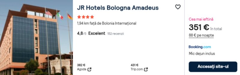 204 €/pers. (zbor si cazare JR Hotels Bologna Amadeus )