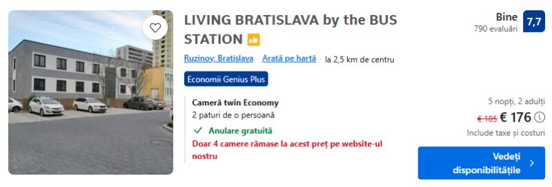 128 €/pers. (zbor si cazare LIVING BRATISLAVA by the BUS STATION )