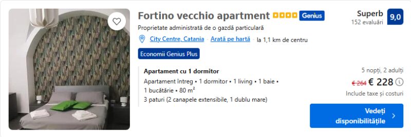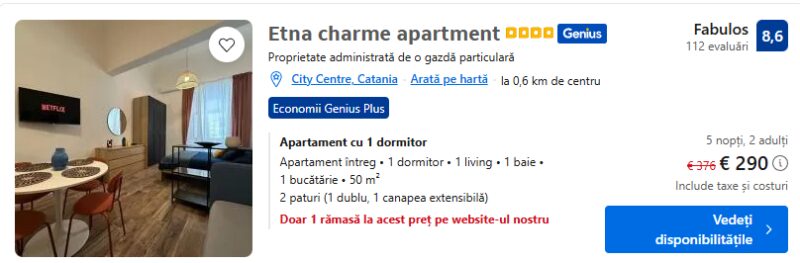 196 €/pers. (zbor si cazare Etna charme apartment )