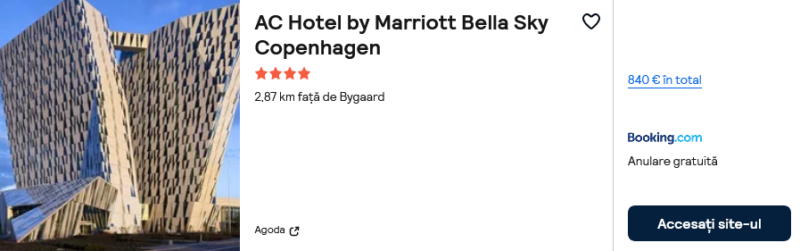 625 €/pers. (zbor si cazare Comwell Copenhagen Portside )