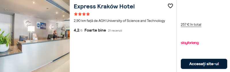 179 €/pers. (zbor si cazare Express Kraków Hotel )
